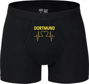 Herren Boxer Short - Dortmund - Herzschlag - Druck gelb - Unterwäsche Größe L schwarz