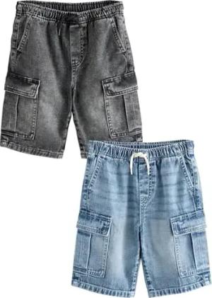 Jungen Cargo-Denimshorts aus 100% Baumwolle, 2er-Pack Grey/Mid Blue 146