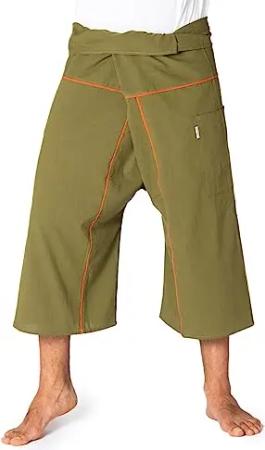 Fisherman Pants Stripe-Design 3/4, Olive Green, XL
