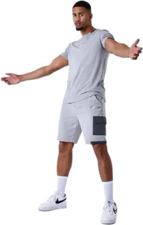 Herren Kurze Hose Kapuzenpullover, Grau, Medium