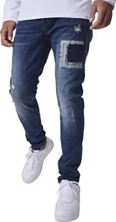 Slim Jeans mit Patchwork Einsatz Gr. 29, blau