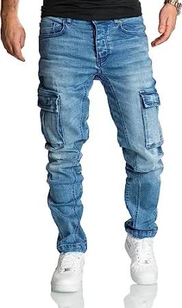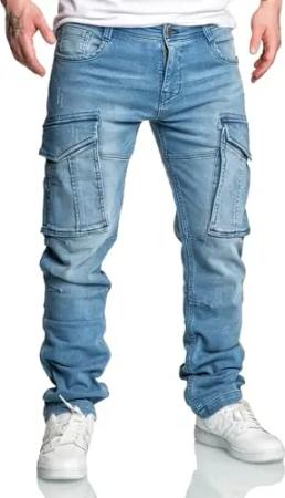 Herren Cargo Jeans Regular Slim Denim Hose Destroyed R7977 Hellblau W38/L34