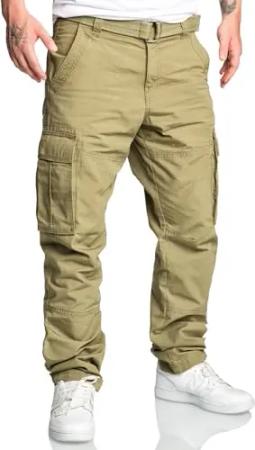 Herren Cargohose Loosefit Jogger Chino Hose Inkl. Gürtel R7028 Olive W30