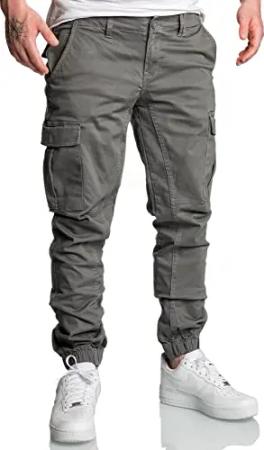 Herren Jogger Cargo Chino Jeans Hose R7020 Dunkelgrau W32
