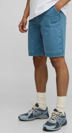 Relaxed Fit Carpenter Overdyed Belted Shorts - Blue - 32, Blue
