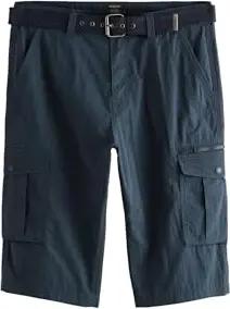 Herren Standard Lange Cargo-Shorts mit Gürtel Marineblau 36