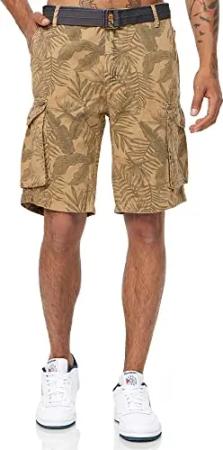 Herren Cargo Shorts Cargoshorts inkl. abnehmbarem Gürtel A201 (Khaki, W31)