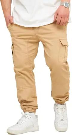 Herren Cargo Jogger Jeans-Hose mit Gummibund Stretch Jeans Männer Freizeithose S2_3888-Beige-W30