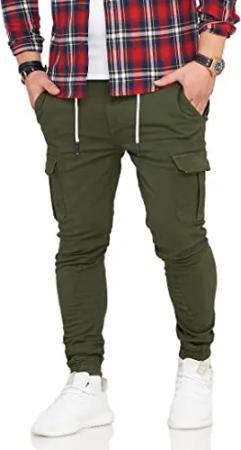 Herren Cargohose Chino-Hose Jogger Jeans-Hose Cargo 80-9399 Khaki W38