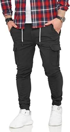 Herren Cargo Jogger Jeans-Hose mit Gummibund Stretch Jeans Männer Freizeithose S2_3888-Dunkelgrau-W29