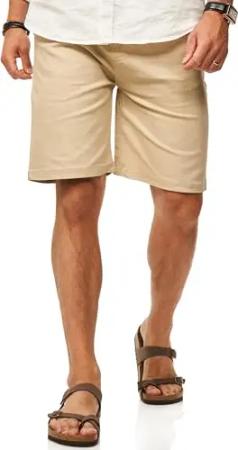 Herren Chinoshorts Kurze Hose mit Stretch incl. Canvas-Gürtel - Bermuda Sommershorts für Männer - Elastische Shorts im Regular-Fit S2_Chino 25-Beige-W34