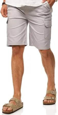 Herren Kurze Hose Cargoshorts mit Stretch - Bermuda Sommershorts für Männer - Elastische Chinoshorts im Regular-Fit S2_GIDLEY-Stone-W38