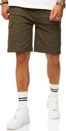 Herren Chinoshorts Kurze Hose mit Gummibund & Tunnelzug - Sommershorts Bermuda für Männer - Elastische Shorts im Regular-Fit S2_Mafia-Olive-M
