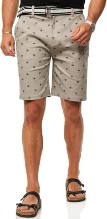 Herren Kurze Hose Chinoshorts mit Palmenmuster incl. Canvas-Gürtel - Bermuda Sommershorts für Männer - Elastisch im Regular-Fit S2_Toy STORY-Taupe-W34