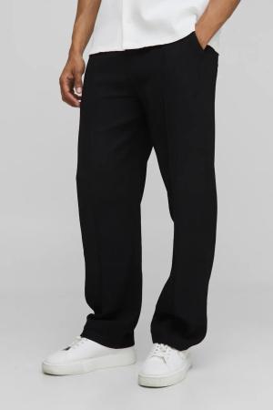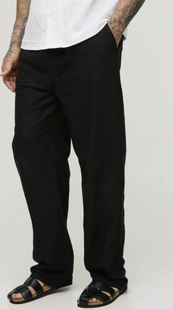 Tall lockere Hose in Leinenoptik mit elastischem Bund - Schwarz - S, Schwarz