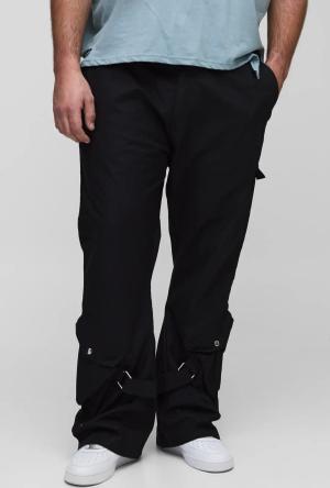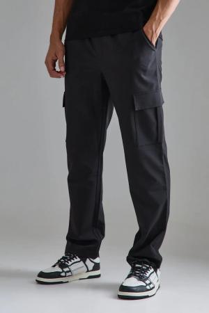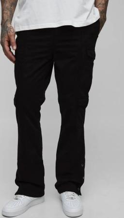 Plus elastische Slim-Fit Cargo-Hose mit Schnalle - Schwarz - 42, Schwarz