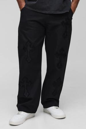 Plus lockere Hose mit Kreuz-Applikation - Schwarz - 42, Schwarz
