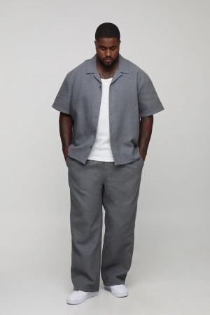 Plus Oversize Hemd in Waffeloptik & lockere Hose - Grau - 3XL, Grau
