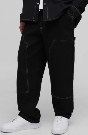 Relaxed Fit Contrast Stitch Carpenter Trousers - Schwarz - 28, Schwarz