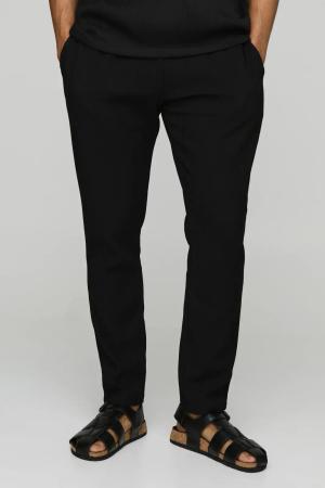 Smarte Slim-Fit Hose in Waffeloptik mit elastischem Bund - Schwarz - L, Schwarz