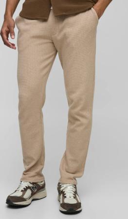 Smarte Slim-Fit Hose in Waffeloptik mit elastischem Bund - Taupe - S, Taupe