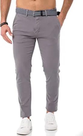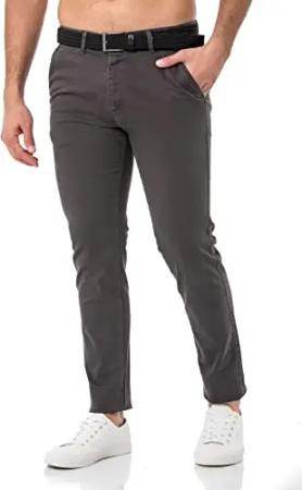 Herren Chino-Hose mit Gürtel Bequeme Freizeit- und Businesshose Grau W34 L32