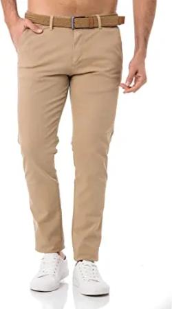 Herren Chino-Hose mit Gürtel Bequeme Freizeit- und Businesshose Sand W38 L34