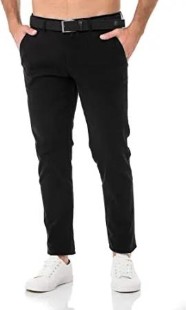 Herren Chino-Hose mit Gürtel Bequeme Freizeit- und Businesshose Schwarz W30 L32