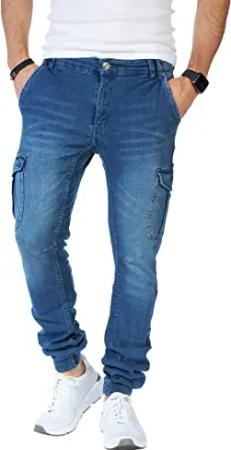 Herren Cargo Jeans Hose für Männer Jungen Regular Slim Fit Denim Destroyed Jogger Freizeithose Casual Stretch Pants 8003 (Dark Blue-Elasten, 33W/32L)