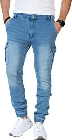 Herren Cargo Jeans Hose für Männer Jungen Regular Slim Fit Denim Destroyed Jogger Freizeithose Casual Pants Stretch 8003 (Light Blue-Elasten, 30W/32L)