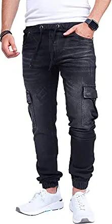 Herren Cargo Jeans Hose für Männer Jungen Regular Slim Fit Denim Destroyed Jogger Freizeithose Casual Pants Stretch | 7 Taschen 8004 (Black, 33)