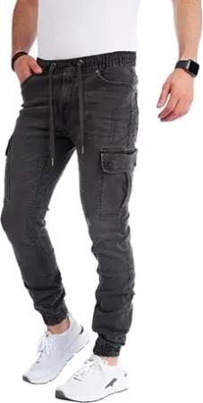 Herren Cargo Jeans Hose für Männer Jungen Regular Slim Fit Denim Destroyed Jogger Freizeithose Casual Pants Stretch 8003 (Grey, 34W/32L)