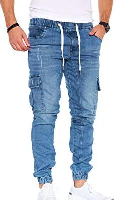 8014 Herren Cargohose Männer Cargohose Herren Chino Hose Slim fit Cargohose Freizeithose Jeans Cargohose Destroyed Jeans… (as3, Numeric, Numeric_29, Regular, Tall, B-Light Blue, 34, Regulär)