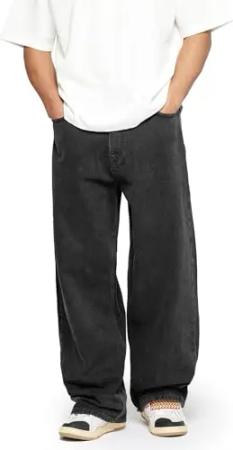 Herren Wide Baggy Jeans Streetwear Wide Loose Fit, Hosengröße:W34 L32, Farbe:Black