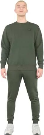 Herren-Trainingsanzug-Set, Fleece, Rundhalsausschnitt, Sweatshirt, Pullover, Jogginghose, khaki, S