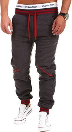 Herren Retro Jogginghose mit Reißverschlüsse an den Beinenden, Anthrazit/Rot (0402), S