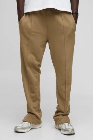 Gerippte Jacquard-Jogginghose mit geradem Bein und geteiltem Saum - Taupe - S, Taupe