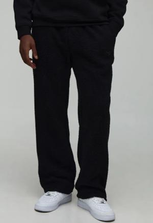 Borg-Sweatshirt mit geradem Bein Bestickte Jogginghose - Schwarz - S, Schwarz