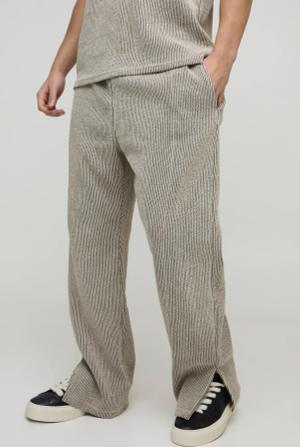 Gerippte Jacquard-Jogginghose mit geradem Bein und geteiltem Saum