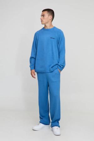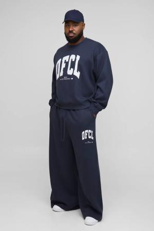 Plus kastiges Official Sweatshirt mit Rissen & Jogginghose mit extrem weitem Bein - Blau - 3XL, Blau