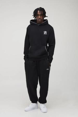 Tall Hoodie mit B-Stickerei & Oversize Jogginghose - Schwarz - 2XL, Schwarz