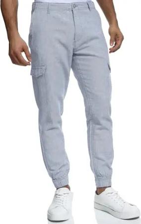 Herren Booth Cargohose aus Leinen & Baumwolle mit 6 Taschen | Stoffhose für Männer Blue Wave, M