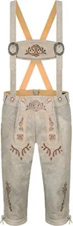 Kurze Wildbock Lederhose Maxl grau mit edler Stickerei Gr. 44-64 (DE/NL/SE/PL, Numerisch, 54, Regular, Regular, Grau)