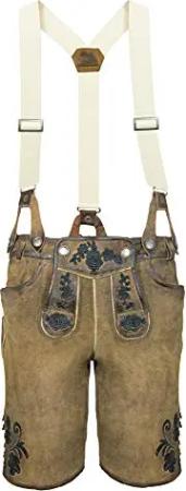 Trachten-Lederhose Wörgl mit Stickerei und Hosenträger kurz Oefele Jagdbekleidung (DE/NL/SE/PL, Numerisch, 56, Regular, Regular, Braun)