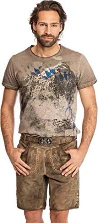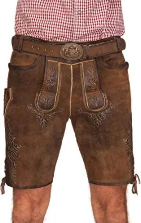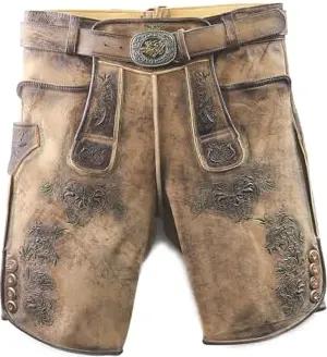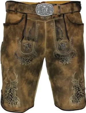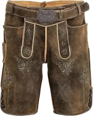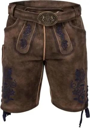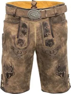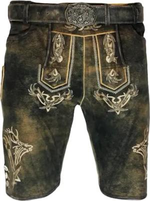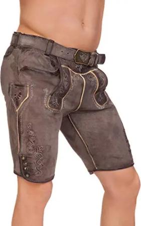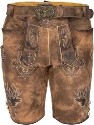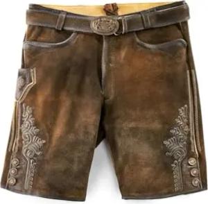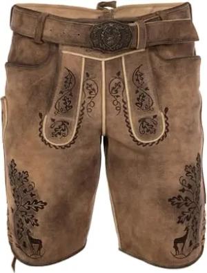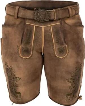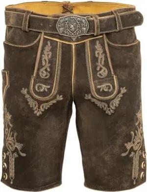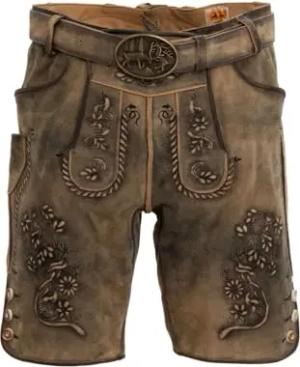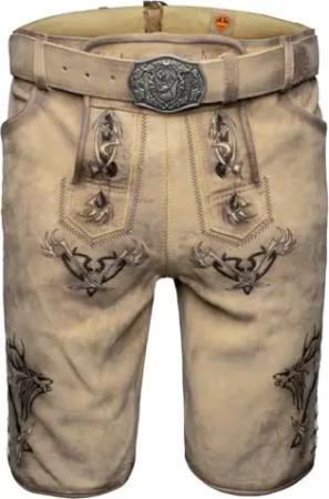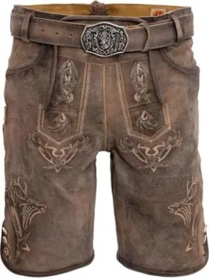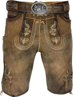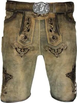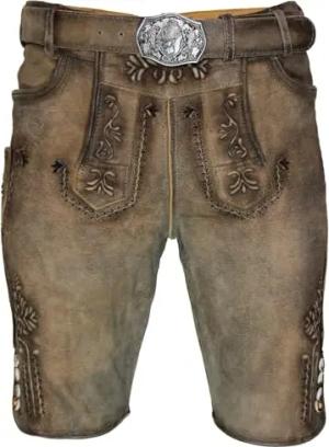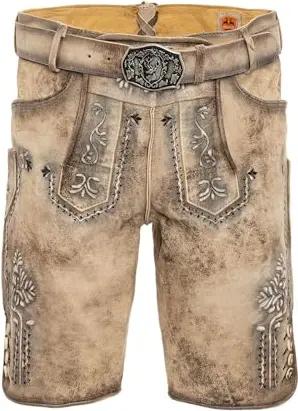 Kurze Herren Lederhose Zugersee mit Gürtel | Antik R. Sahara 46