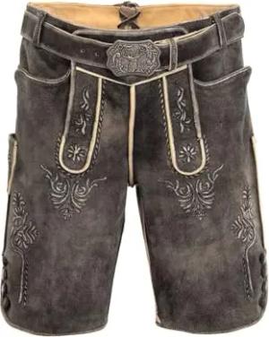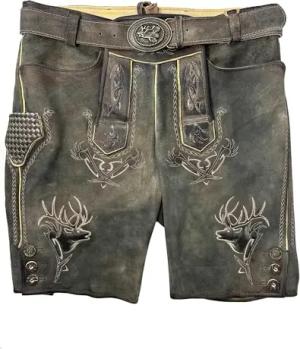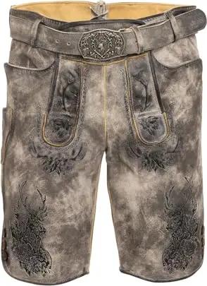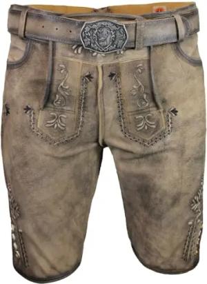 Kurze Herren Lederhose Zugersee mit Gürtel | Antik R. Zement 48