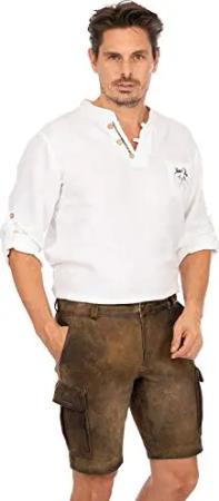 Kurze Herren Lederhose Hopfensee mit Gürtel | Nappato Stein 54