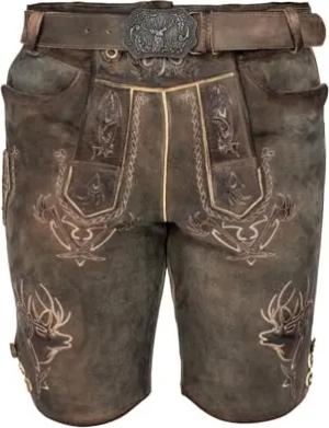 Kurze Lederhose Urgsee mit Hirschstickerei | Antik Coffee 64