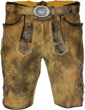 Kurze Herren Lederhose Mandlach mit Gürtel | Camel Braun 52