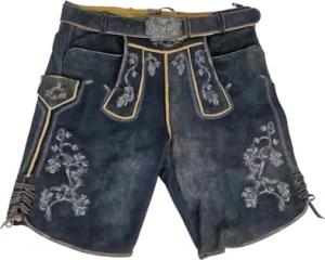 Kurze Lederhose Burgsee mit Gürtel | Schiefer Blau 58